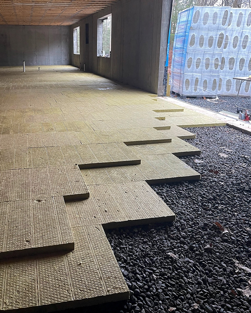 Below‑grade assemblies use one of the most thermally conductive building materials, concrete. Codes are changing and we need to insulate these assemblies from the exterior of the building envelope for both indoor comfort and durability. Below-grade assemblies also demand materials that can withstand constant moisture, soil pressure, and thermal fluctuation. PowerWool RigiBoard® is engineered specifically for these conditions: its composition resists degradation and pest damage, maintains dimensional stability, and provides consistent insulation even under slab or against foundation walls. By choosing RigiBoard®, architects and builders ensure assemblies that remain resilient, safe, and efficient for decades. Using PowerWool is a stone simple solution for below grade applications.
